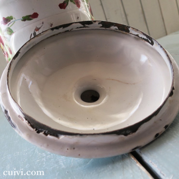 内側の様子です。チコリーの小さな缶を入れて使っていたのか、丸くサビ跡がついていますね。