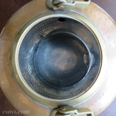 ボディは、溶接で取付けられた真鍮の注ぎ口以外は継ぎ目がなく、一枚の銅板から打ち出しなどの技術を用いて形成されています。
