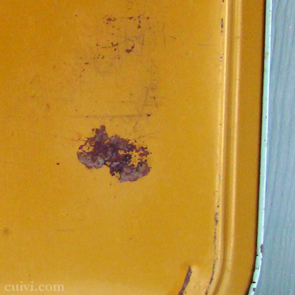 裏側は擦れによるキズが多くあります。キズが重なり合った部分には錆がある箇所も。